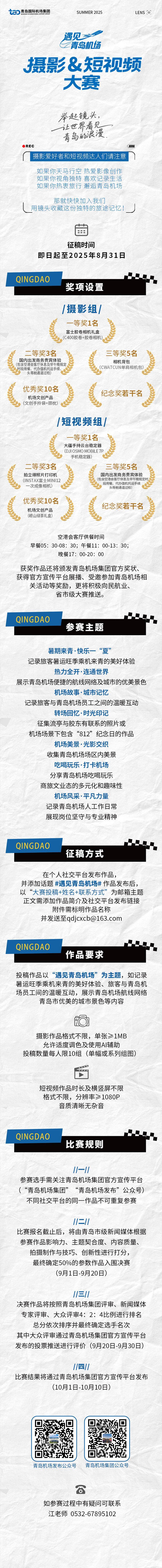“遇见青岛机场”暑运主题摄影及短视频大赛来啦!